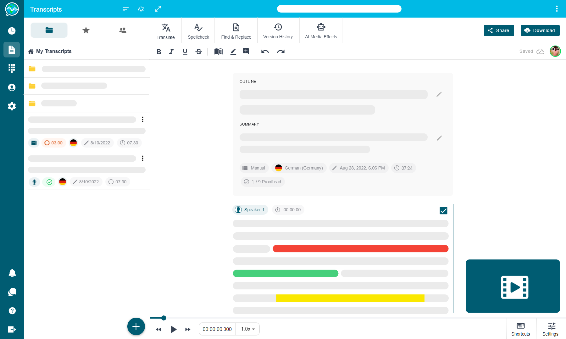 With our advanced omni-channel AI transcription platform, you can generate precise transcripts of your video and audio content in 100+ languages. Collaborate in real-time through our communication tools, enhance your video and audio files with our latest AI tools, and improve accessibility by translating your transcripts into more than 100+ languages.